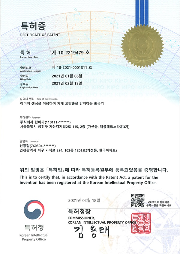 특허번호 : 10-2219479