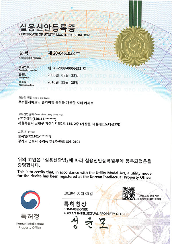 특허번호 : 10-0980075
