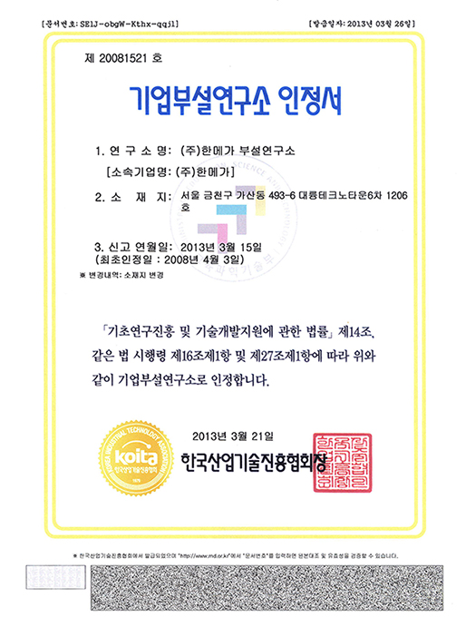 기업부설연구소 인정서