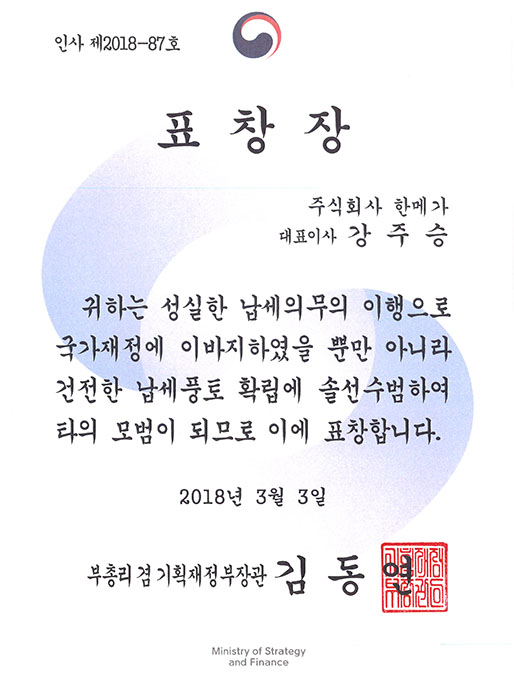성실 납세자 표창장